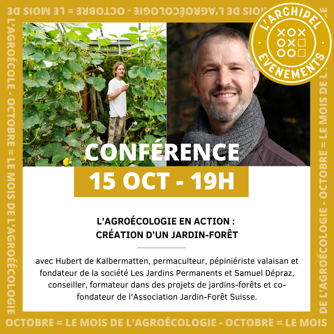 · Hubert de Kalbermatten : permaculteur, pĂ©piniĂ©riste valaisan et fondateur de la sociĂ©tĂ© Les Jardins Permanents, il a conçu les plans du jardin-forĂȘt de L'Archipel. Il prĂ©sentera ce projet, ainsi que d'autres jardins-forĂȘts, et lancera le dĂ©bat sur celui de L'Archipel.