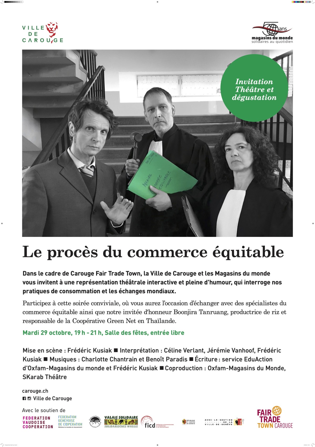 Dans le cadre de Carouge Fair Trade Town, la Ville de Carouge et les Magasins du Monde vous invitent Ă une reprĂ©sentation théùtrale interactive et pleine dâhumour, qui interroge nos pratiques de consommation et les Ă©changes mondiaux.
