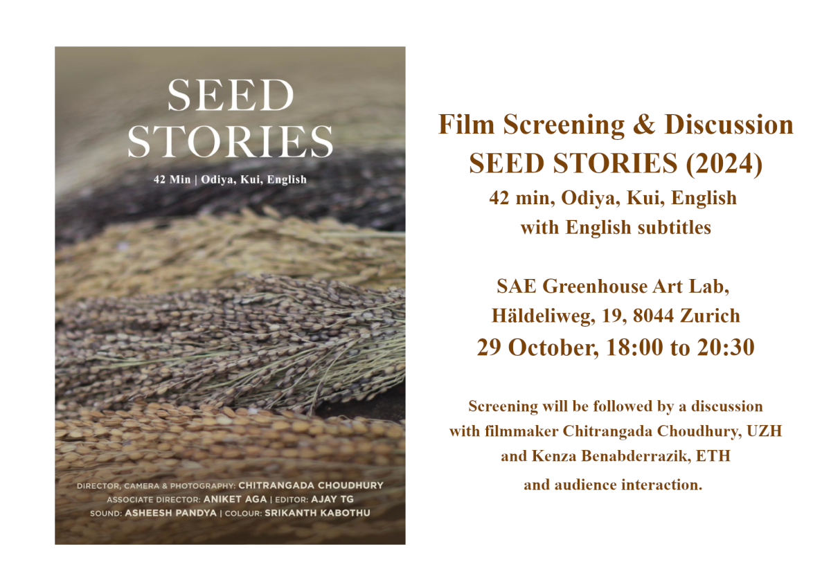 We host a Film screening that will be followed by a discussion between the film maker Chitrangada Choudhury and Kenza Benabderrazik, and audience interactions. In the Niyamgiri mountains of Odisha, India, barefoot ecologist Dr. Debal Deb and his team are conserving over 1,000 endangered heirloom rice varieties, as genetically modified cotton and chemicals reshape the region. 'Seed Stories' offers a close look at how these changes are altering a community rich in agro-ecological knowledge, prompting reflection on the meaning of sustainability. -
