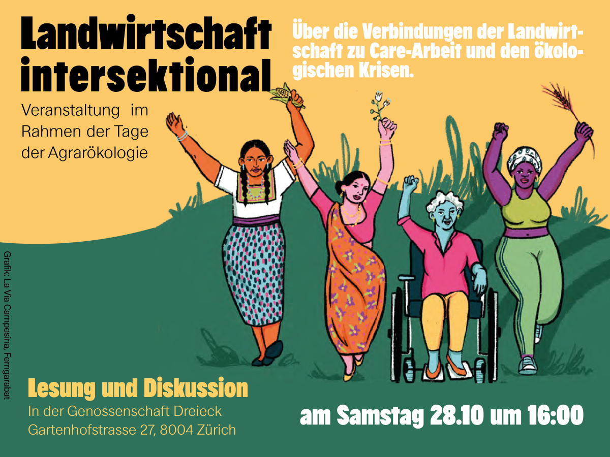Mit einer Lesung und anschliessenden Diskussion beschäftigen wir uns mit den Verbindungen der Landwirtschaft zu Care-Arbeit und den ökologischen Krisen. -